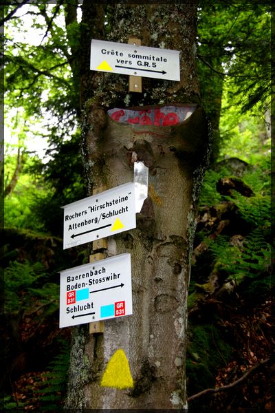 A pied :Plus de 16 500 kilomètres de sentiers savamment entretenus et balisés, des sentiers de grande randonnée dont le fameux GR5 qui empruntent la ligne des crêtes et ouvre sur de maginfiques panoramas: le Massif des Vosges s'impose depuis longtemps comme un paradis de la randonnée pédestre et des raquettes à neige en hiver. |