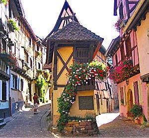 Ville fortifiée dès 1257, Eguisheim est fier de ses pittoresques ruelles concentriques aux maisons à colombages richement fleuries. Seize cours colongères, des fontaines, une église ainsi que des orgues Callinet contribuent à la personnalité historique du village. L'Eglise paroissiale est dédiée à Saint-Pierre et Saint-Paul. Remaniée en style gothique en 1220, il ne subsiste plus que le clocher de l'ancienne Eglise romane. La charpente du clocher du 14ème siècle soutient quatre cloches dont la plus importante provient de l'Abbaye de Marbach. Le portail de l'Eglise abrite une sculpture en bois polychrome dite "Vierge Ouvrante". Cette oeuvre des 13ème et 14ème siècles est l'unique exemplaire de ce type en Alsace, avec celle de Kaysersberg.